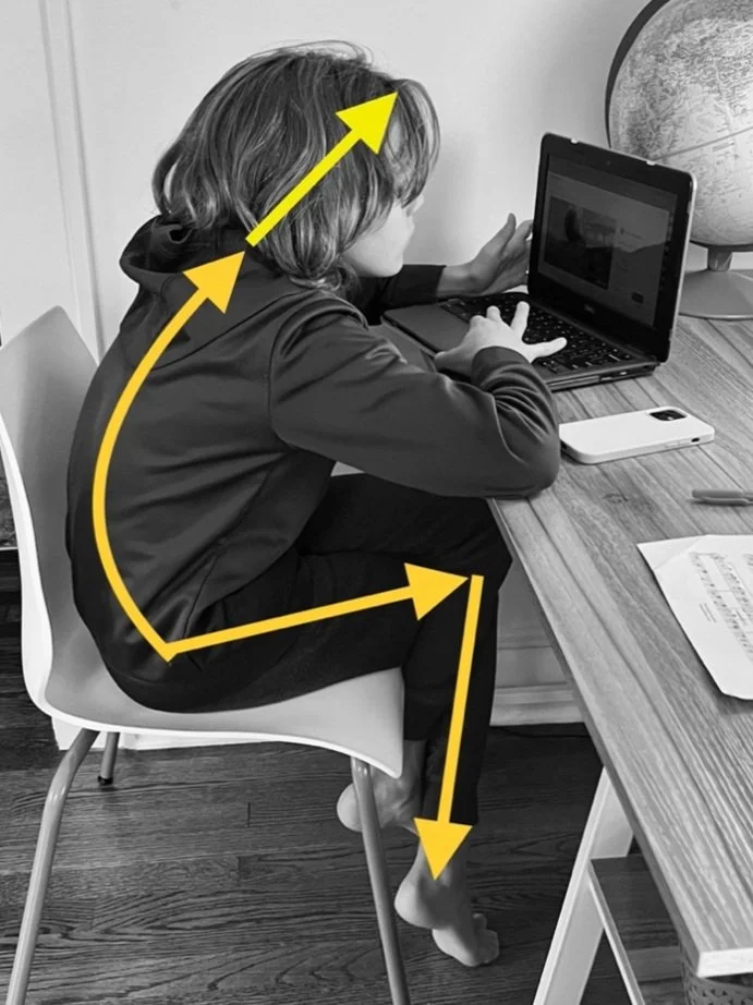 Laptops and chromebooks are light, portable, and convenient, but were not designed for prolonged use. They present ergonomic and postural alignment challenges. A few simple changes and make an enormous difference when working on a laptop or similar device.